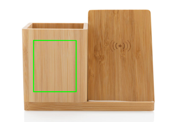 Kabelloses 10W-Schnellladegerät mit Stifthalter aus RCS (Recycled Claim Standard)-zertifiziert recyceltem ABS. Gesamter Recyclinganteil: 6% basierend auf dem Gesamtgewicht des Artikels (einschließlich Bambussockel) Die Bambusaußenseite des Organizers ist vollständig aus FSC 100-Bambus gefertigt. Inklusive 120cm Type-C Ladekabel aus RCS-zertifiziertem Recycling-TPE. Verpackt in FSC-Mix-Kraftkarton. Type-C Input: 5V/2A; 9 V/1,67 A. Wirless Output: 5V/1A;9V/1,1A (10W) Registered design®