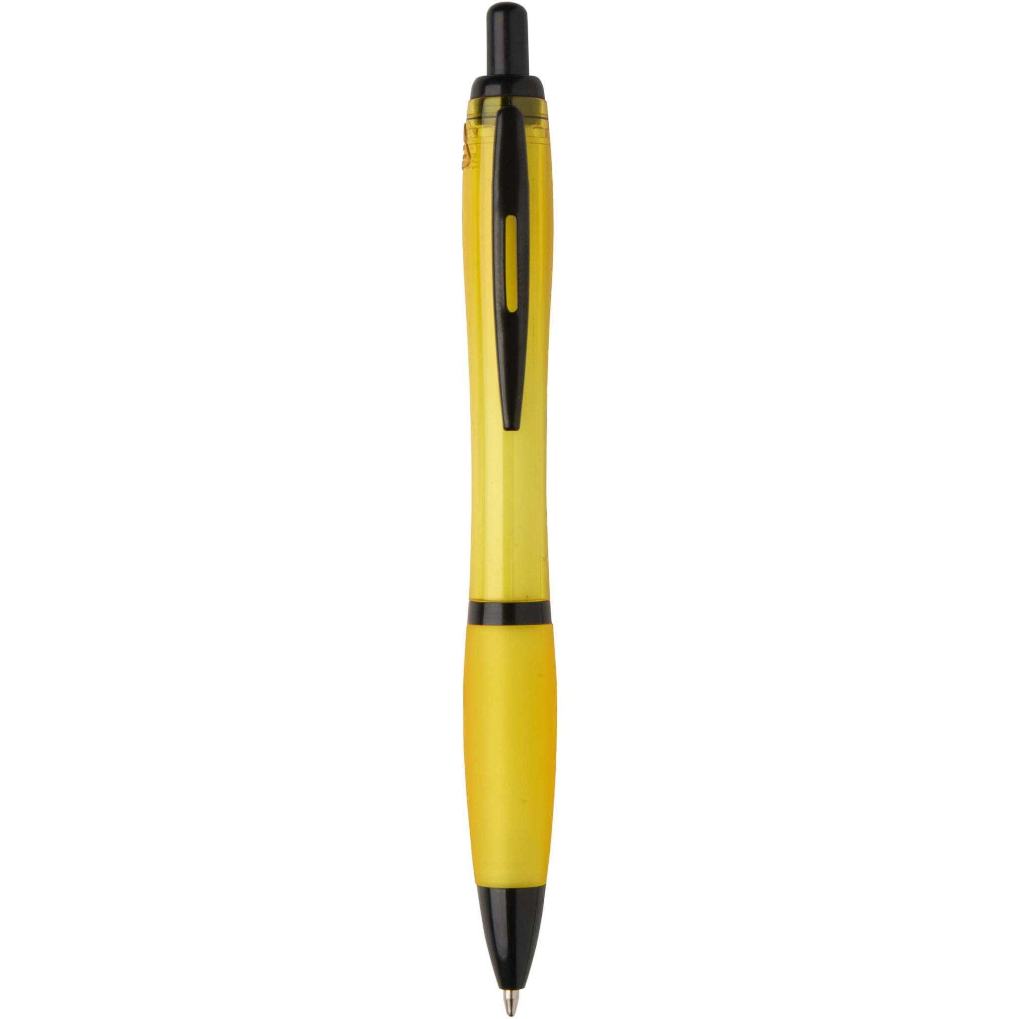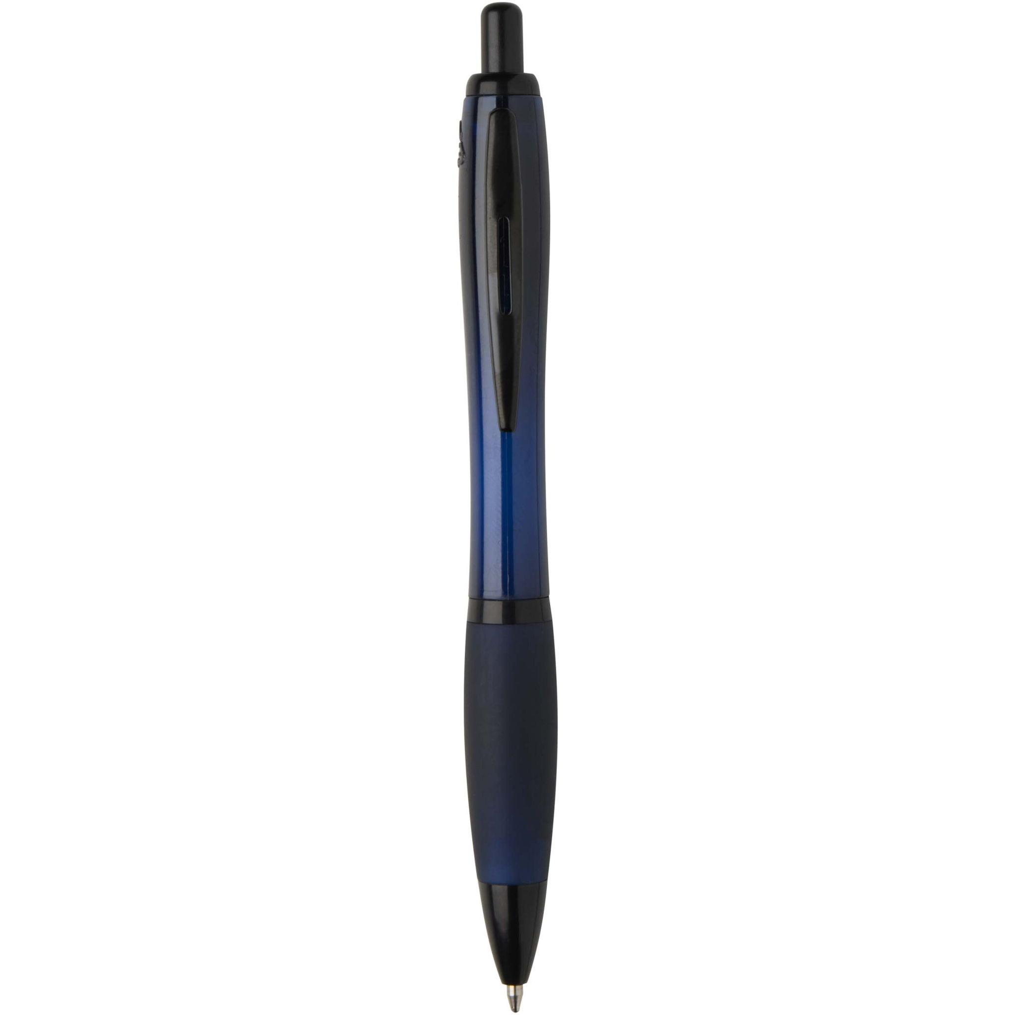 Der Nash Kugelschreiber in der Black Edition hat ein stilvolles, geschwungenes Design mit schwarzen Akzenten und hergestellt aus RCS-zertifiziertem recyceltem Kunststoff zur Reduzierung von Neumaterialien. Dank des schnellen Klickmechanismus ist der Kugelschreiber sofort einsatzbereit. Der weiche Griff verringert die Belastung beim Schreiben. Tintenfarbe: Schwarz. Schreiblänge: 1000 Meter. Spitzengröße: 1,0 mm.