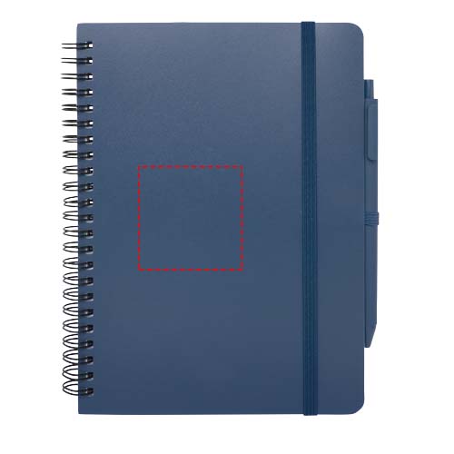 Das Thalaasa A5 Hardcover Notizbuch besteht aus recyceltem ozeangebundenem Kunststoff und umfasst 80 Blatt, liniert, aus cremefarbenem 70 g/m² Papier. Das Notizbuch hat abgerundete Ecken. Es ist mit einem elastischen Verschluss und einer Stiftschlaufe ausgestattet. Der Kugelschreiber mit schwarzer Tinte ist ebenfalls aus recyceltem, ozeangebundenem Kunststoff hergestellt. Schreiblänge: 1000 Meter. Schreibspitze: 1 mm.