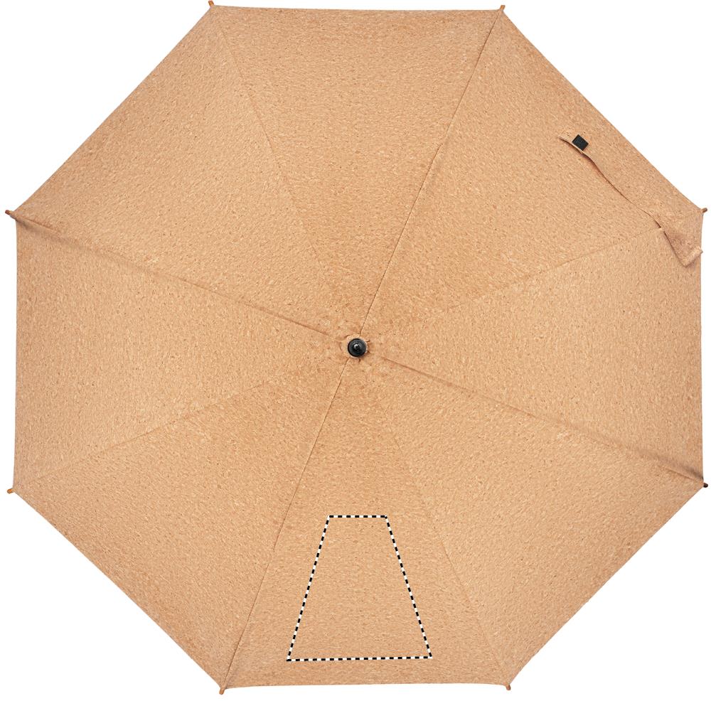25 inch auto open cork umbrella with bamboo shaft and Ply wood handle, fiberglass ribs. Black plastic tips and top. Manual closure. Cork is 100% natural material. Due to its structural nature and surface porosity the final print result per item may have deviations.