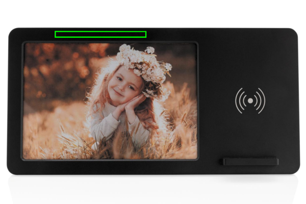 Keep in touch with your loved ones while charging your phone with this 5W wireless charger with photo frame. The photo frame fits pictures up to 10 x15 cm. Including 150 cm PVC free TPE micro usb cable. Wireless charging compatible with all QI enabled devices like Android latest generation, iPhone 8 and up. Input: 5V/2A; Output: 5/1A - 5W