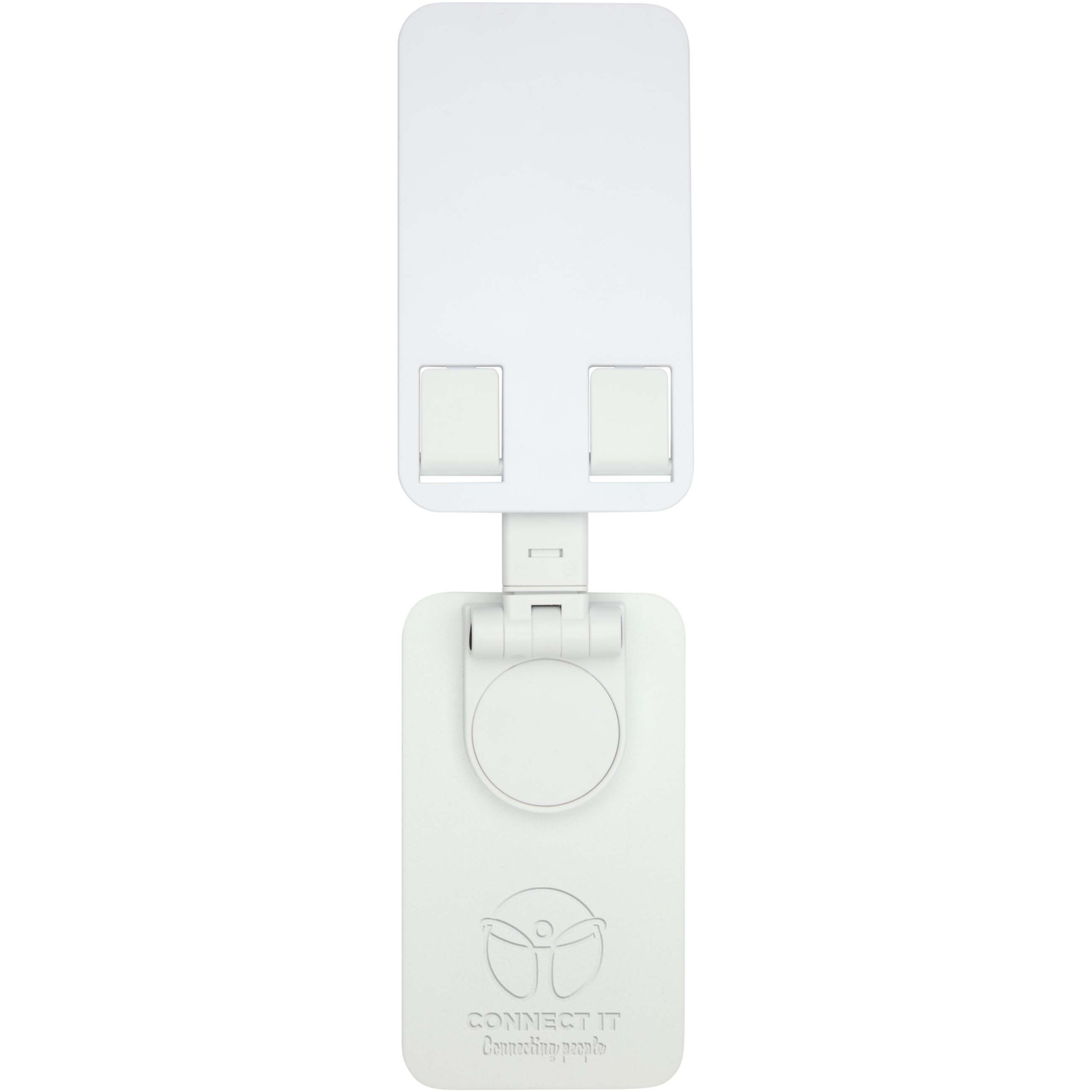 The Alhena phone holder is a desk accessory made from recycled plastic, with a sturdy metal base. The phone holder features adjustable angles and height, providing a comfortable and customisable viewing experience. Perfect for work or home use.