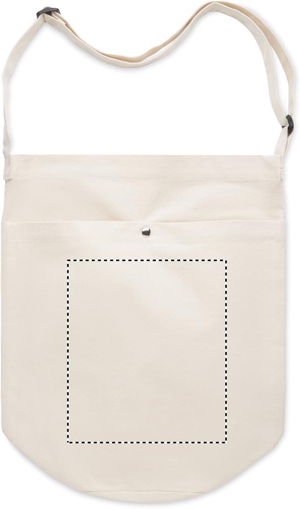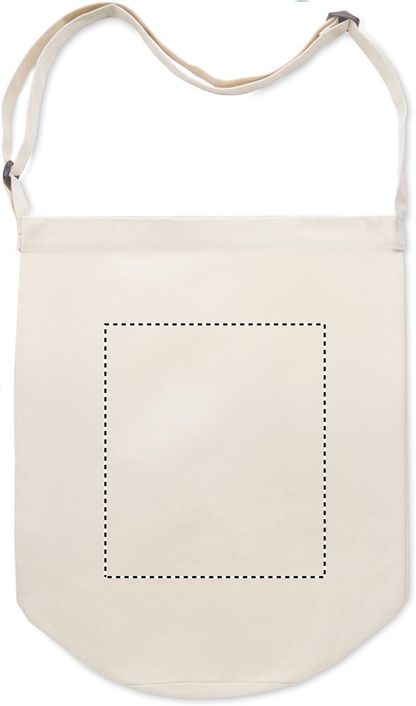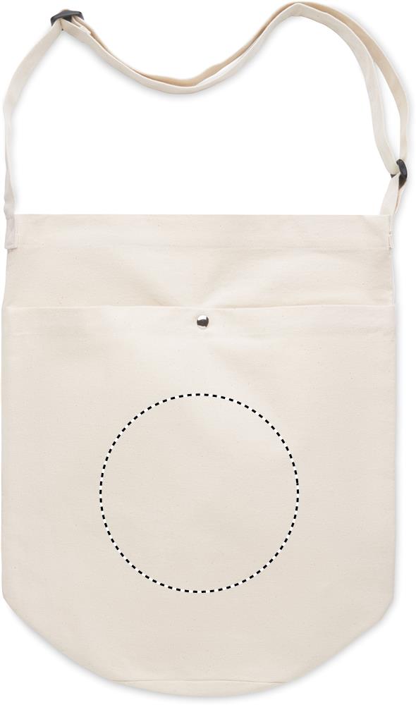 Canvas bag with long adjustable cross shoulder strap and large front pocket with snap closure. Includes inner pocket. 270 gr/m².