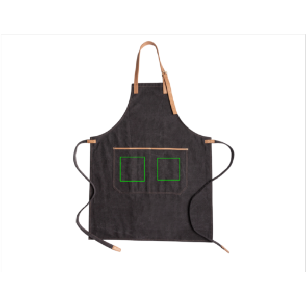 Be a top chef in this beautiful apron made in a heavy quality 16oz. canvas with PU accent details. With a one-size design, it has adjustable straps at the neck and on the sides. A large pocket comes in handy for storing notes and utensils. Supplied in a Kraft gift box. Machine wash at 30 degrees celsius with similar colours.