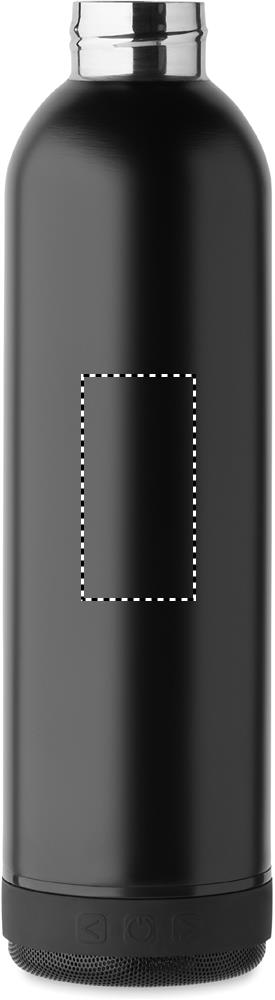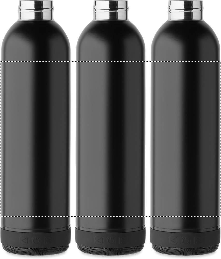 Double wall vacuum insulating bottle in recycled stainless steel (90% recycled stainless steel and 10% stainless steel) and silicone carry handle with detachable 3W wireless speaker. Capacity: 500 ml. 500 mAh battery. Remove speaker for cleaning. Leak-free.