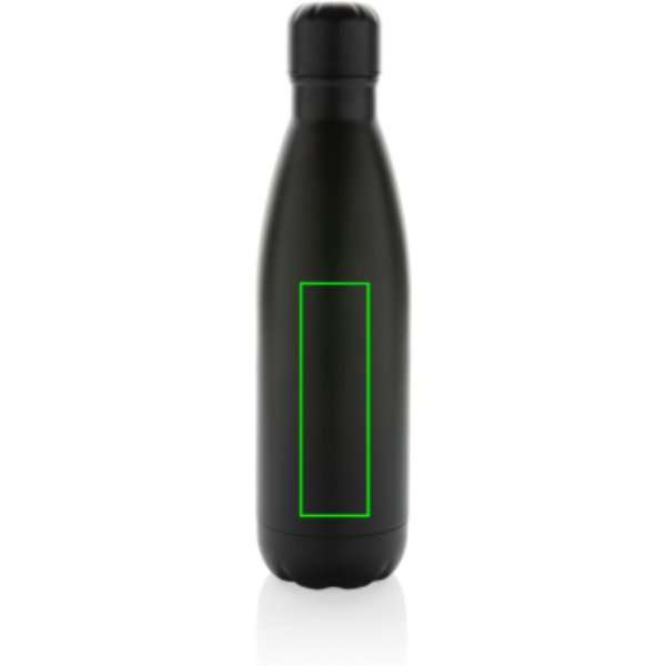 Elevate your daily water intake with this single wall stainless steel bottle. The bottle is suitable for cold drinks only. With a base that fits in most cup holders, this sleek looking water bottle will keep you hydrated on the go wherever you are. Made with RCS (Recycled Claim Standard) certified recycled materials. RCS certification ensures a completely certified supply chain of the recycled materials. Total recycled content: 84% based on total item weight. BPA free. Capacity 500ml. Including FSC®-certified kraft packaging.