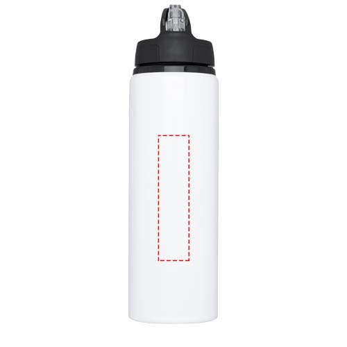 Single-walled aluminium bottle screw-on lid with a flip-top drinking spout. The lid features a handle for easy carrying. BPA free. Volume capacity is 800 ml.