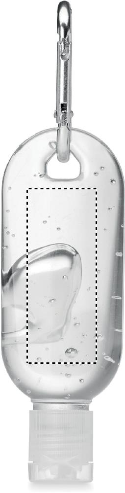 Hand cleanser gel in PET refillable bottle with flip cap and carabiner. Non-alcohol formulation. Capacity 30 ml.