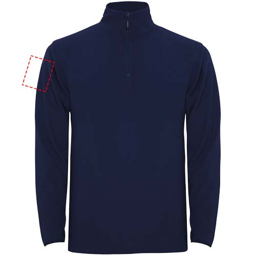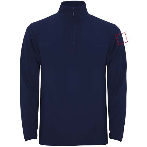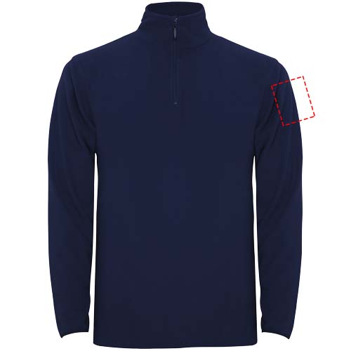 Microfleece with half zipper in neck and chin protector. Cuffs with matching elastic trim. Removable label. The model is 190 cm and is wearing size L.