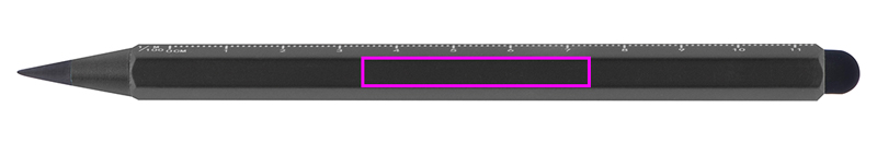 Aluminum inkless pen with touch function and scale in cm and inch. The lead is made of a mixture on graphite and metal, which makes it extremely durable. Your logo will be engraved on the free space on the barrel.