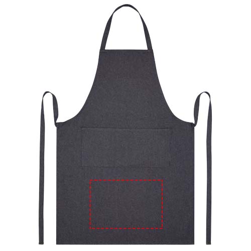 The Nima apron is made of 320 g/m² 70% recycled cotton and 30% recycled polyester making it thick and sturdy, and comfortable to wear. It features 2 adjacent pockets (each 22 x 20 cm), and a 1 metre tie-back closure. This apron also comes with an Aware™ tracer. This innovative feature allows users to trace the origins and journey of their item through a QR code, enhancing transparency in the supply chain and fostering a stronger connection between the product and its production process.