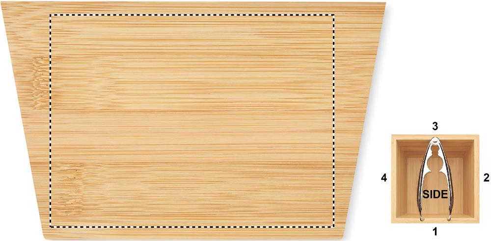 Nut cracker set with bamboo bowl and silver coloured nut cracker in zinc alloy with TPR grip. Bamboo is a natural product, there may be slight variations in colour and size per item, which can affect the final decoration outcome.