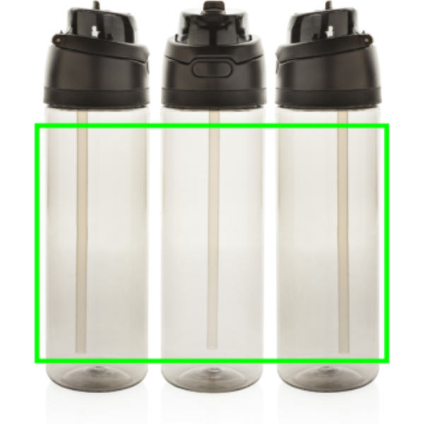 Introducing the Omni Sip lightweight RPET Water Bottle. You deserve versatility in your hydration routine, and that's why we created the Omni Sip. This innovative bottle lets you choose how you drink. Sip through the built-in straw while holding it upright, or tilt it back to enjoy a sip from the wide-mouth opening. Ready for action at a moment's notice, just push the button to flip the top open, and push it back down to securely lock it shut, keeping out dirt and germs. 800ml content and made from RCS certified recycled PET. The Omni Sip is entirely leak-proof. Packed in FSC giftbox. Total recycled content: 47% based on total item weight.