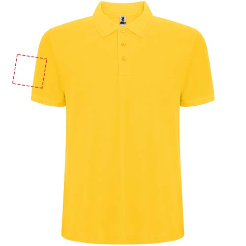 Short-sleeve polo shirt. Collar and sleeves edging in 1x1 ribbed fabric with detail. 3-button placket. Reinforced covered seams in collar. Side slits and optional pocket. Removable label. Anti-pilling treatment.
