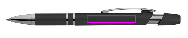 Metallic-looking plastic ballpen with large capacity refill and push function. We will print your logo below the clip.