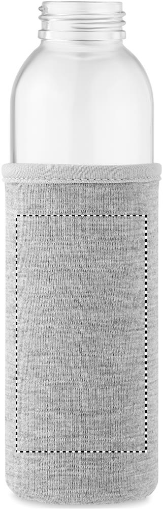 Recycled glass bottle with neoprene pouch and PP lid with silicone hanger. Leak free. Capacity: 500 ml.