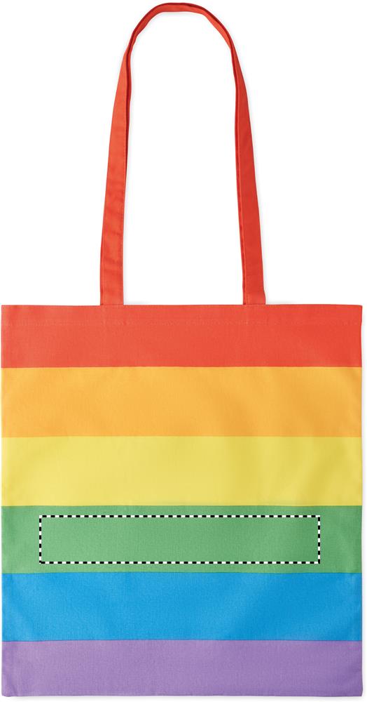 Pikkade sangadega vikerkaarepuuvillane ostukott. 200 gr/m².