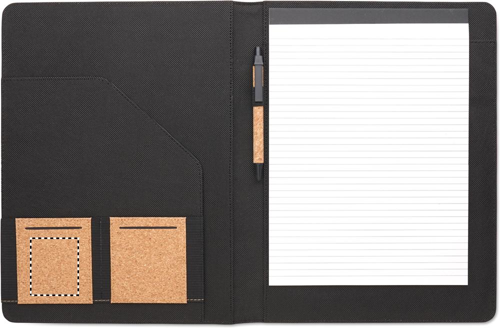 A4 korgist konverentsimapp. Korduvtäidetav A4 märkmik. 30 taaskasutatud paberiga vooderdatud lehte. Sobiv pliiats ja pliiatsihoidja. 2 kaardihoidjat ja üks suur sahtel.