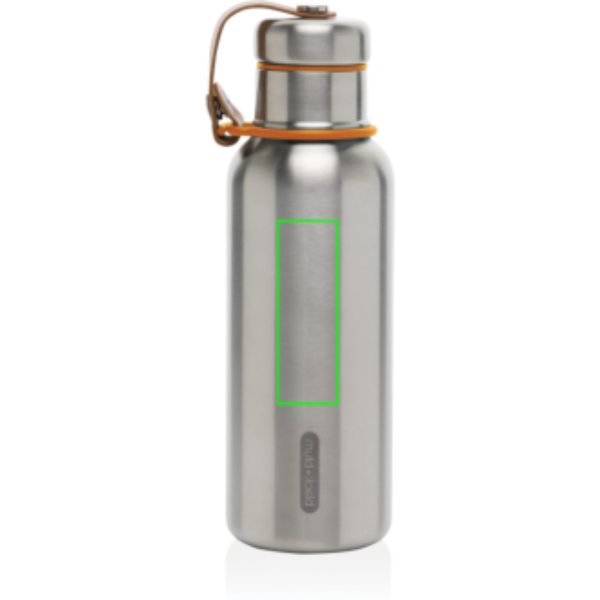 Roostevabast terasest isoleeritud veepudel hoiab joogid külmana 24 tundi või kuumana 12 tundi. Kaas on ka täielikult roostevabast terasest, mis tähendab, et vesi ei puutu kokku ühegi plastikuga. Kunstnahk toimib kandeaasana ja annab kauni disainidetaili. Ainult käsipesu