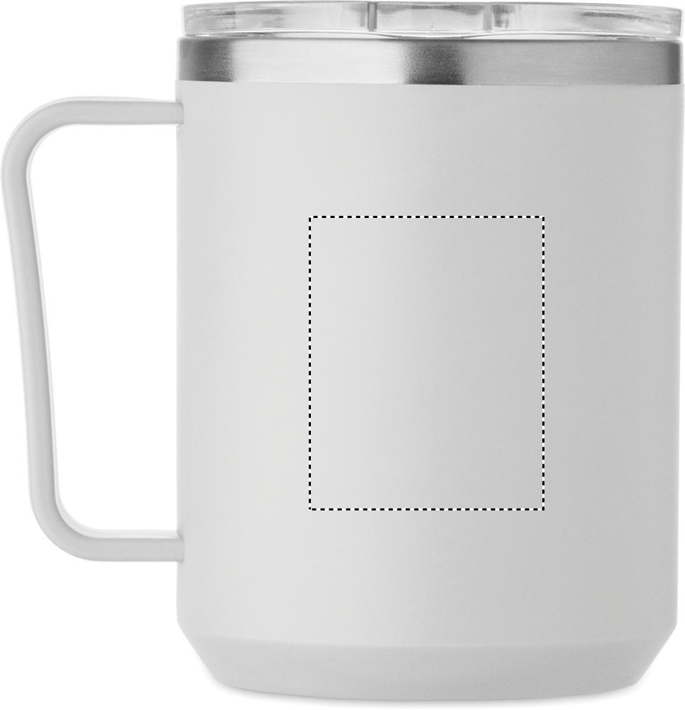 Topeltseinaga kruus, 90% taaskasutatud roostevaba teras ja 10% roostevaba teras ning välispind taaskasutatud polüpropüleen. Komplektis läbipaistev kaas. Mahutavus 400 ml.