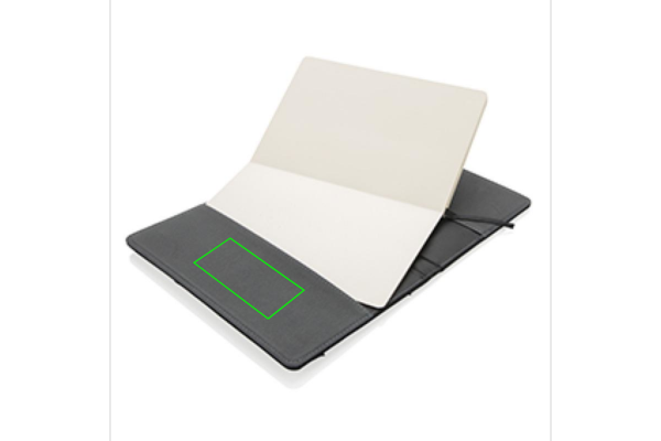 Executive 1680D ja 600D polüestrist märkmiku kate koos pliiatsiga. Kaasa arvatud eemaldatav märkmik, mille sees on 192 lehekülge 80g/m2 paberit. Kaanel olev tasku mahutab pliiatsit, kaarte, sularaha, mobiiltelefoni jne. Pakitud Swiss Peak kinkekarpi.