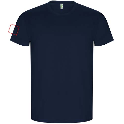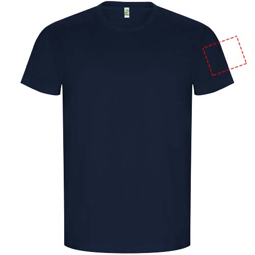 Orgaanilisest puuvillast torujas lühikeste varrukatega T-särk. Pöördkaelus 1x1 soonikuga. Dekoratiivsed õmblused alläärel ja varrukatel. Eemaldatav etikett. Modell on 185 cm pikk ja kannab suurust L.