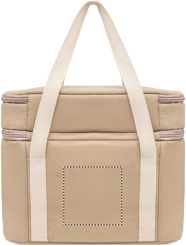 Kahe sektsiooniga pestud lõuendist jahutuskott puuvillase rihmaga. 320 gr/m². Isolatsioon: 15C PEVA 6mm PE vahuga.