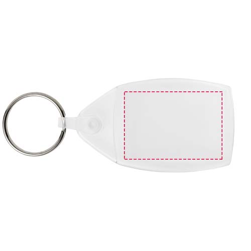 Läbipaistev P6 võtmehoidja metallist poolitatud võtmehoidja ja dünaamilise plastikklambriga. Plastikust klambrikinnitus pakub lamedat profiili, mis sobib ideaalselt postitamiseks. Trükilehe mõõdud: 3,5 cm x 2,4 cm.