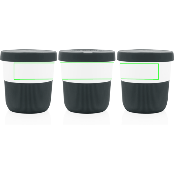 Säästlik alternatiiv traditsioonilistele tassidele! See PLA kohvitass, mis toob teie hommikusesse sõitmisse stiili ja praktilisust, sobib ideaalselt teie lemmik kuuma joogi transportimiseks. Valmistatud taimsest materjalist (PLA), nii et mitte ainult stiilne, vaid ka lahke planeedi jaoks. Mugavuse huvides on kaasas silikoonist käepide ja kaas. Mahub mugavalt enamiku kohvimasinate alla. 100% melamiinivaba. Mahutavus 280ml.