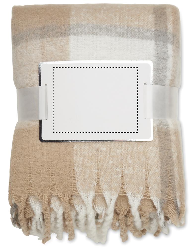 Ruudulise disainiga mohääri tunnetusega RPET polüestertekk käsitsi rullitud narmastega. Paelaga mähitud ja prinditav kaart.