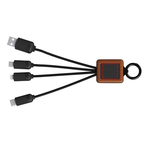 Kolm-ühes puidust kaabel, millel on valgustuslogo ja 3 pistikut (C-tüüp/mikro-USB/iPhone) ning taaskasutatud PET-plastist juhtmed. Kaabliga saab korraga laadida kuni 3 seadet. Patent EUROPE EUIPO.