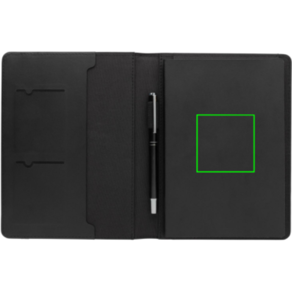 Tõstke oma professionaalset mainet selle A5 portfelliga, mis on valmistatud taaskasutatud polüestrist ja RCS-sertifikaadiga taaskasutatud PU-st. Seest leiate 3 kaardipesa, pliiatsi aasa ja A5 dokumenditasku. Püsige organiseeritud korduvtäidetava A5-formaadis sülearvutiga, millel on FSC® mix kreempaber ja kaal 80 g/m². FSC® kinkekarpi pakitud portfell ühendab stiili ja funktsionaalsuse pingutuseta. Valmistatud 100% taaskasutatud polüestrist, millele on lisatud AWARE™ märgistus.