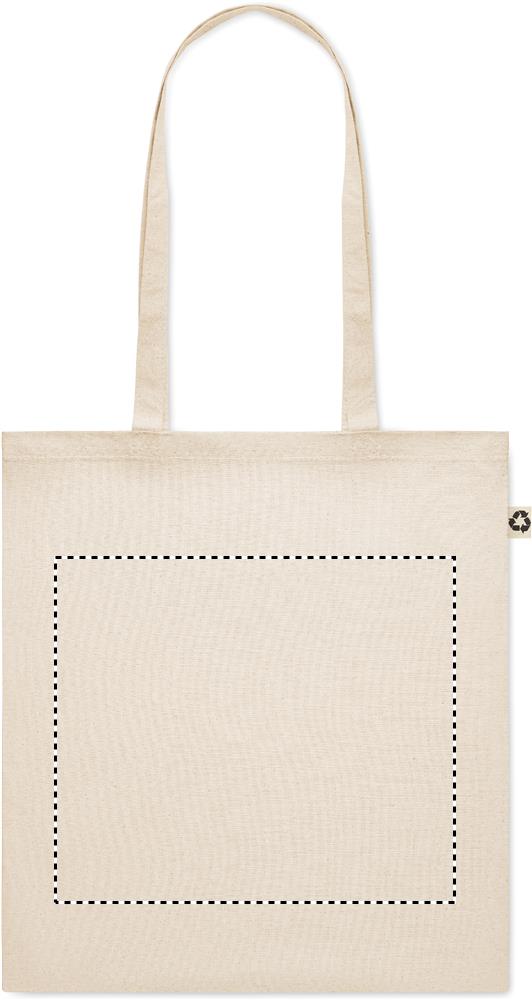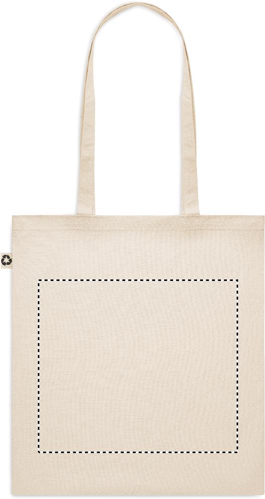 Tarbimisjärgsest taaskasutatud puuvillasest ostukott (65% taaskasutatud puuvill, 35% tavaline puuvill) pikkade sangadega. 140 gr/m².