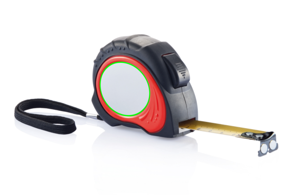 Mõõdulint, punane ABS ümbris musta kummist käepidemega, must vööklamber, must stoppernupp, must otsakonks 2 tugeva magnetiga, kollane lint, korpusel matt hõbedane PVC kleebis.