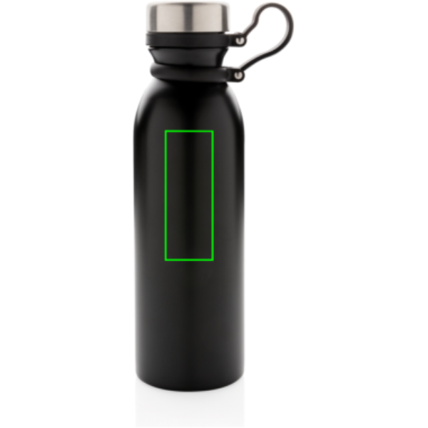 Lekkekindel vasest vaakumisolatsiooniga pudel musta silikoonist kandeaasaga. Ühe käega joomine tähendab, et kaant pole vaja hoida ega kaasas kanda. Kaasas kahekordse seinaga vaakumkonstruktsioon ja vase isolatsioon, mis tähendab, et see hoiab joogid kuumana kuni 8 tundi ja külmana kuni 24 tundi. Konstruktsioon takistab kondenseerumist pudeli välisküljel. Sisu: 600 ml.