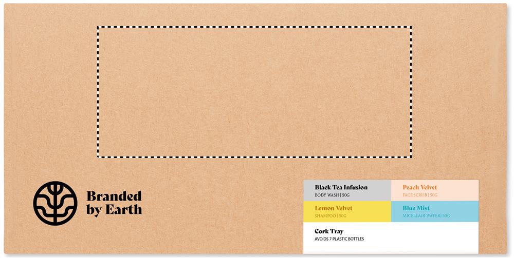 Unisex ilukingituste komplekt firmalt Branded By Earth. Sisaldab vegan 50gr kehapesuvahendit, šampooni, näokoorijat, mitsellaarveekotti ja korgist seebialuseid. Kõik tükid pakitud paberisse. Esitatakse taaskasutatud paberist karbis. Valmistatud EL-is. Kork on 100% looduslik materjal. Selle struktuurse olemuse ja pinna poorsuse tõttu võib lõpptulemus eseme kohta esineda kõrvalekaldeid.