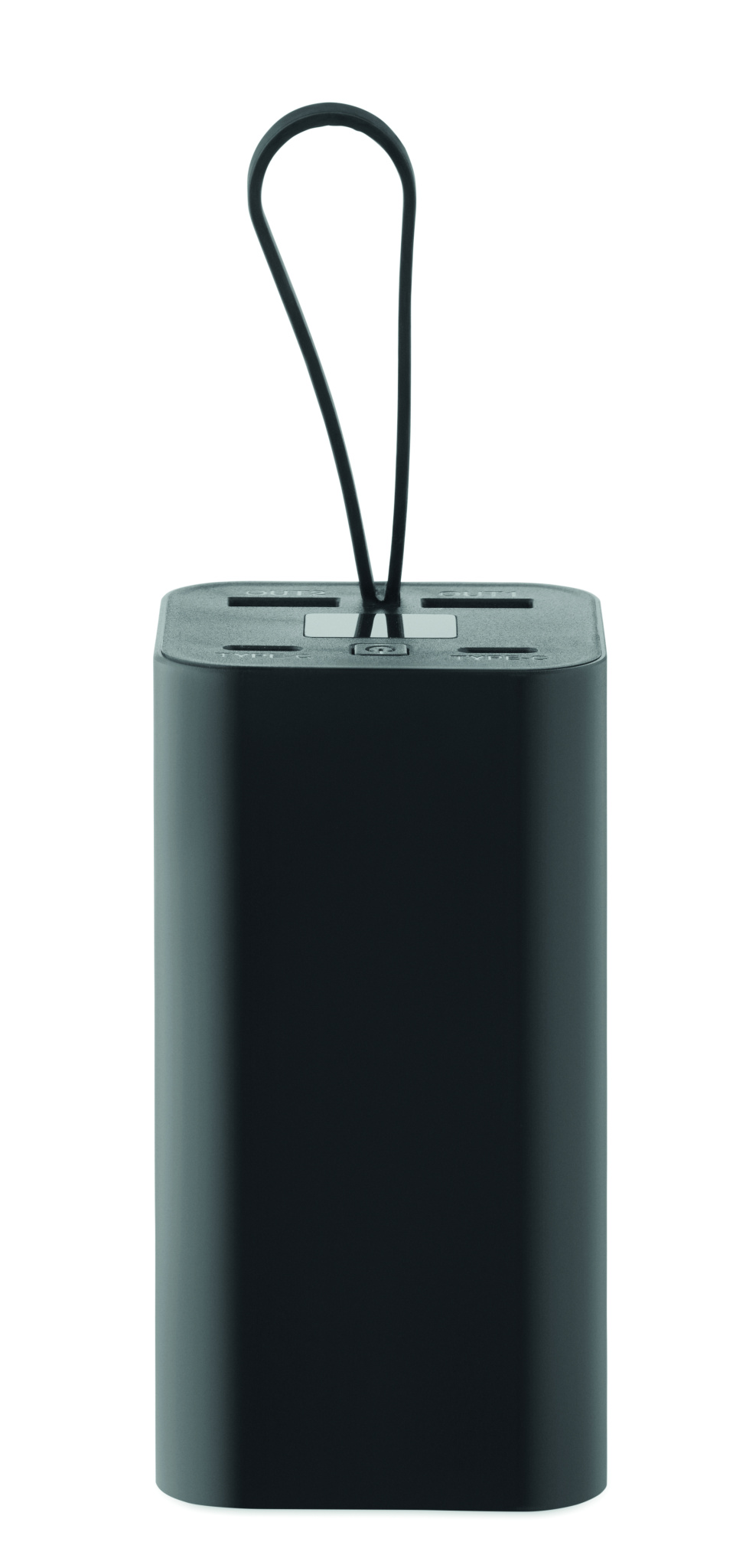 20 000 mAh akupank taaskasutatud alumiiniumist, digitaalse toitenäidiku ja silikoonist riputuskohaga. Kahe Type-C ja kahe USB-A väljundiga ning PD 65W kiirlaadimisega.