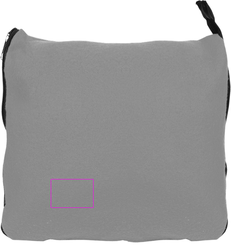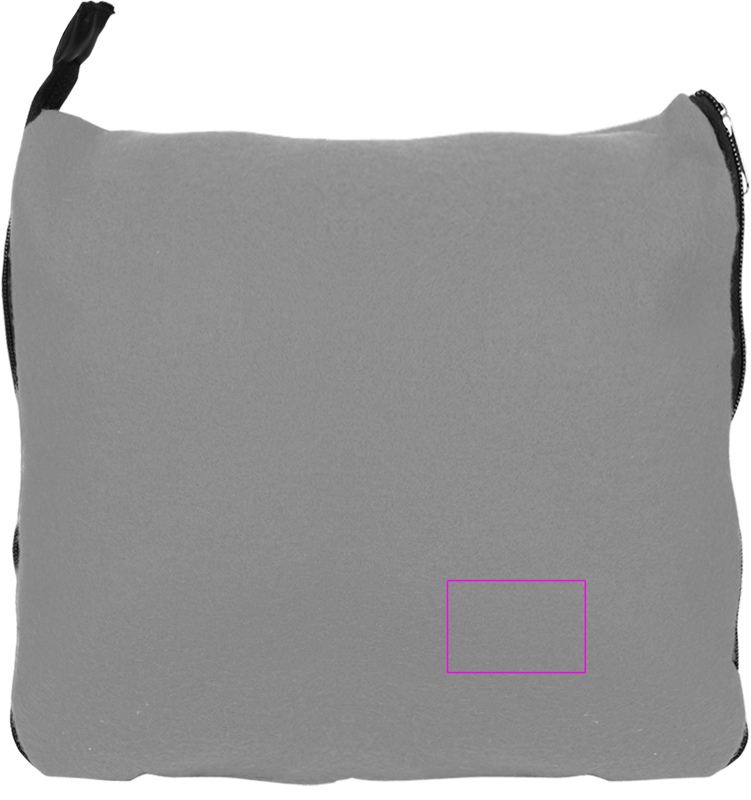 Fleecehuopa (paino 170 g/m², koko: 180 x 120cm) vetoketjulla, joka taittumalla muuttuu tyynyksi. Brodeeraamme logosi peittoon.