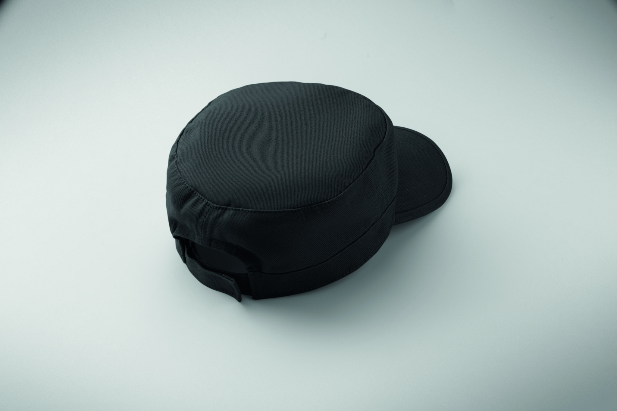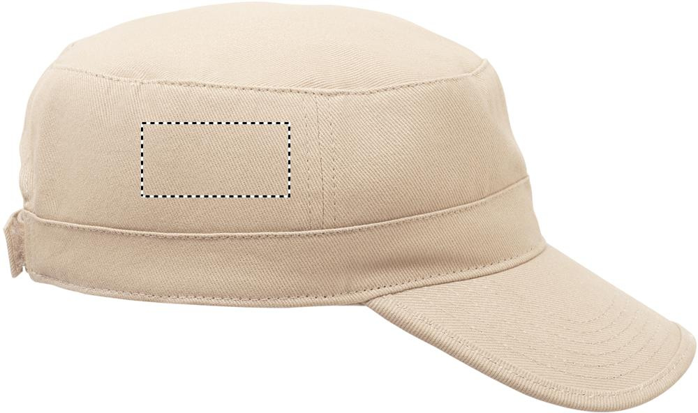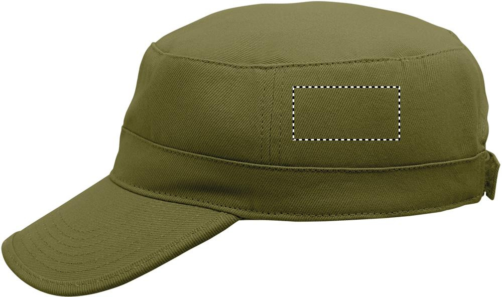 Armylippis 260 g/m² harjattua puuvillaa, polyesterihikinauhalla ja säädettävällä tarranauhakiinnityksellä.