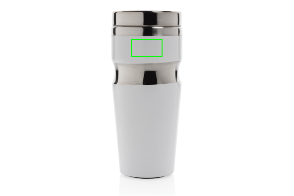350 ml kaksiseinäinen juomamuki ruostumattomasta teräksestä, ruostumaton teräskansi, sulkumekanismi vuotamisen estämiseksi. Rekisteröity design®