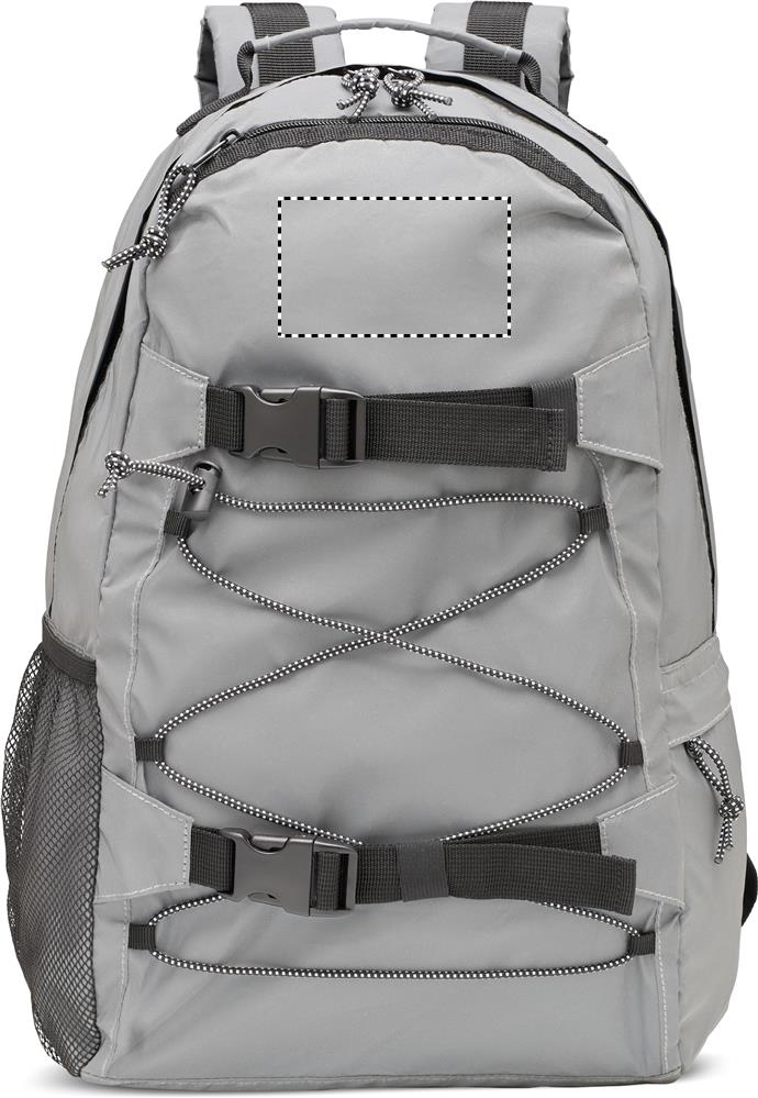 Reppu heijastavaa 190T polyesteriä, jossa on naru edessä. Pehmustettu selkä, hihnat ja pohja. Siinä on lokero 15'' kannettavalle tietokoneelle. Toisella puolella verkkotasku ja toisella puolella vetoketjullinen tasku.