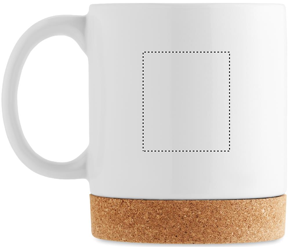 Keraaminen muki, jossa korkkipohjainen yksityiskohta. Tilavuus: 280 ml.