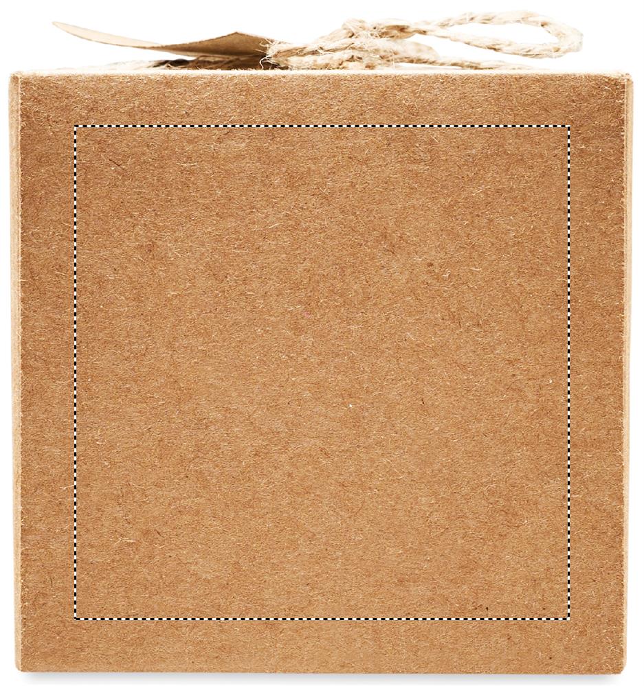 Lasinen kynttilänjalka (120 gr), metsäasetelmalla. Pakattuna pahvipakkaukseen juuttinarulla ja voimapaperi pakettikortilla.