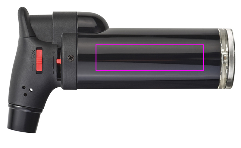 Uudelleentäytettävä "creme brulee" taskulamppu, jossa säädettävä liekkikoko ja lasten turvallisuus. Painamme logosi varrelle.