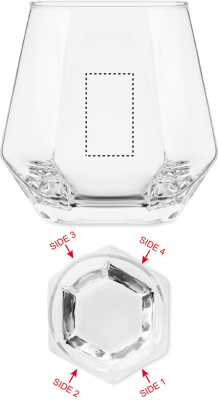 Geometrinen timantin muotoinen kallistettu juomalasi. Viskille tai muille juomille. Tilavuus: 300 ml.