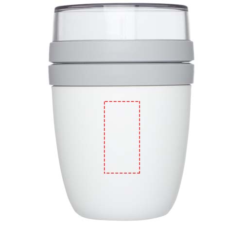 Lounasrasia, jossa on kaksi eri osastoa, jotta ainesosat voidaan pitää erillään. Molemmissa osastoissa on erillinen kansi, joten ne pysyvät puhtaina. Ylimmän läpinäkyvän osaston tilavuus on 200 ml, mikä tarkoittaa, että siihen mahtuu noin 75 grammaa kiinteää ruokaa. Pohjasäiliön tilavuus on 500 ml. Valmistettu kestävästä materiaalista, ja sitä voidaan käyttää pakastimessa, mikroaaltouunissa (poista kansi) ja astianpesukoneessa. Ylintä läpinäkyvää säiliötä ei saa laittaa mikroaaltouuniin. Vuotamaton. BPA-vapaa. 2 vuoden Mepal takuu.