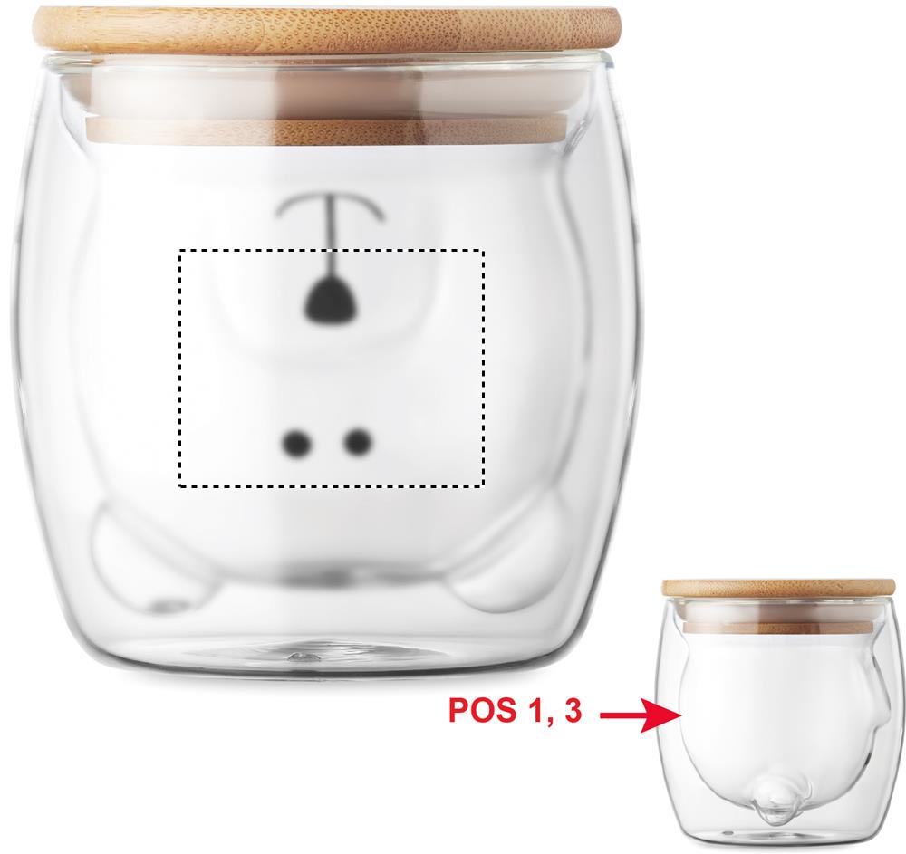Kaksiseinäinen 260 ml borosilikaattilasi karhunkasvokuvioinnilla ja bambukannella.