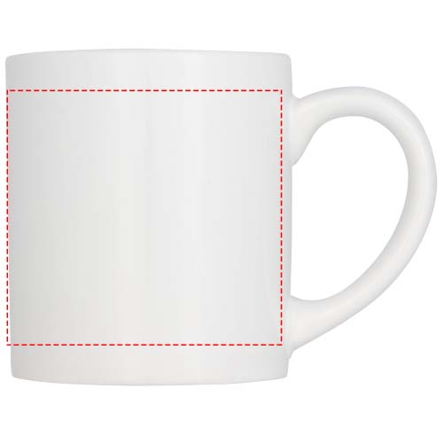 Tässä keraamisessa mukissa on erityinen pinnoite sublimaatiota varten. Tilavuus on 210ml. Esillepano valkoisessa pahvilaatikossa.