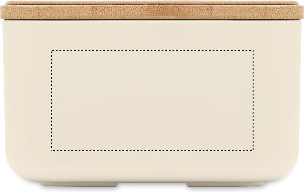100 % PLA-maissi lounasrasia, jossa bambukansi ja RPET-kuminauhakiinnitys. Tilavuus: 1000 ml.