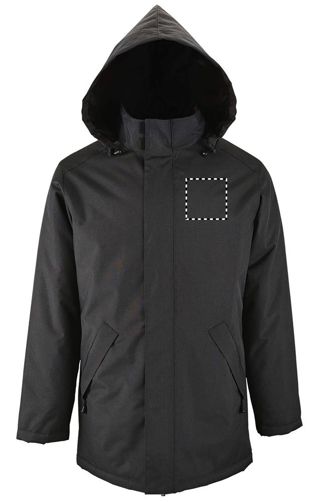 SOL'S ROBYN, unisex-takki, pehmustettu vuori, 100% polyesteri - pvc- pinnoite, vuori ja pehmuste : 100% polyesteri oxford 300d, vetoketju auki kaksinkertaisella liukusäätimellä ja läpällä, jossa on itsekiinnittyvät hihnat ja piilotetut painonapit, huppu kauluksen sisäpuolella, fleecevuorattu kauluksen sisäpuoli, 2 vetoketjullista ulkotaskua läpällisillä läpillä, 1 sisäpuolinen tasku, hihansuukahvat. Kokojen vastaavuudesta katso kokotaulukko tuoteselosteosassa.